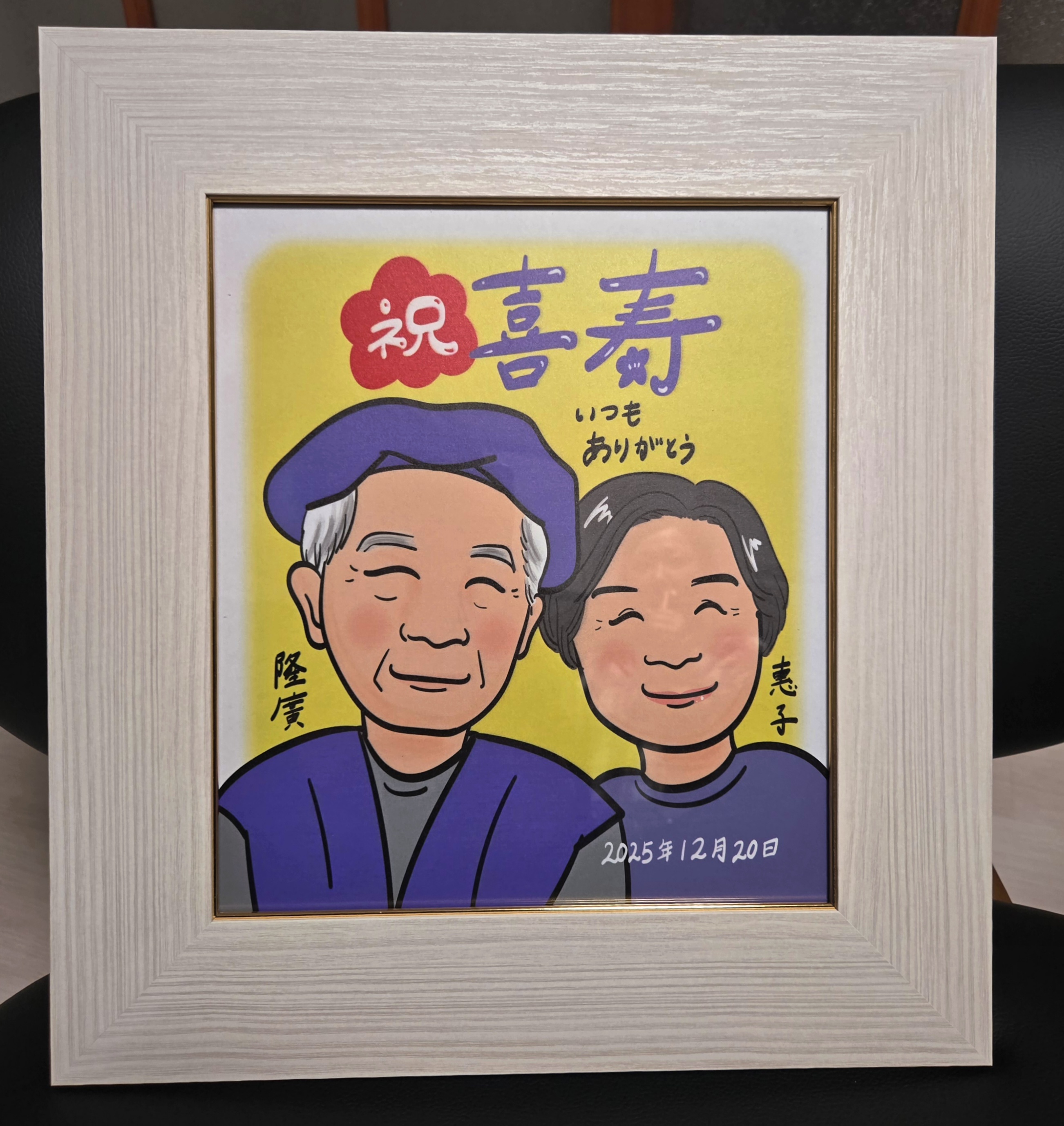 似顔絵グラフィックスでは、似顔絵を注文された方に無料でフレームをプレゼントしています。