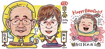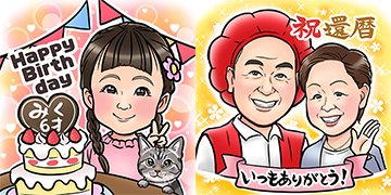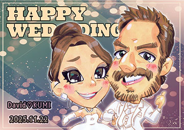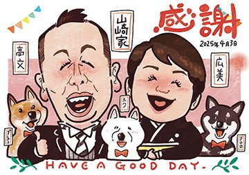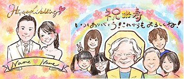 また、似顔絵作品にメッセージを入れたいというオーダーも承ります。まずはお気軽にご相談下さい。