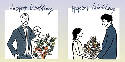 似顔絵の構成は基本的に写真を元に作成しますが、特別な衣装や髪型、希望する風景での似顔絵をご希望の方はご相談ください。