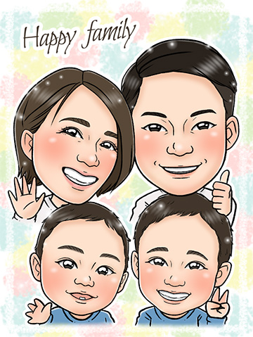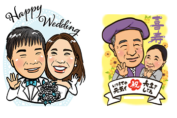 似顔絵をつくるというのは、特別な日であると思います。全て手描きでしっかりとお作りさせていただきますので安心して似顔絵をお申込みください。