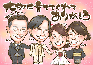 似顔絵グラフィックス結婚式の似顔絵ウェルカムボードやご両親贈呈用ボード、記念日・プレゼントボードなど、世界にひとつだけの似顔絵を