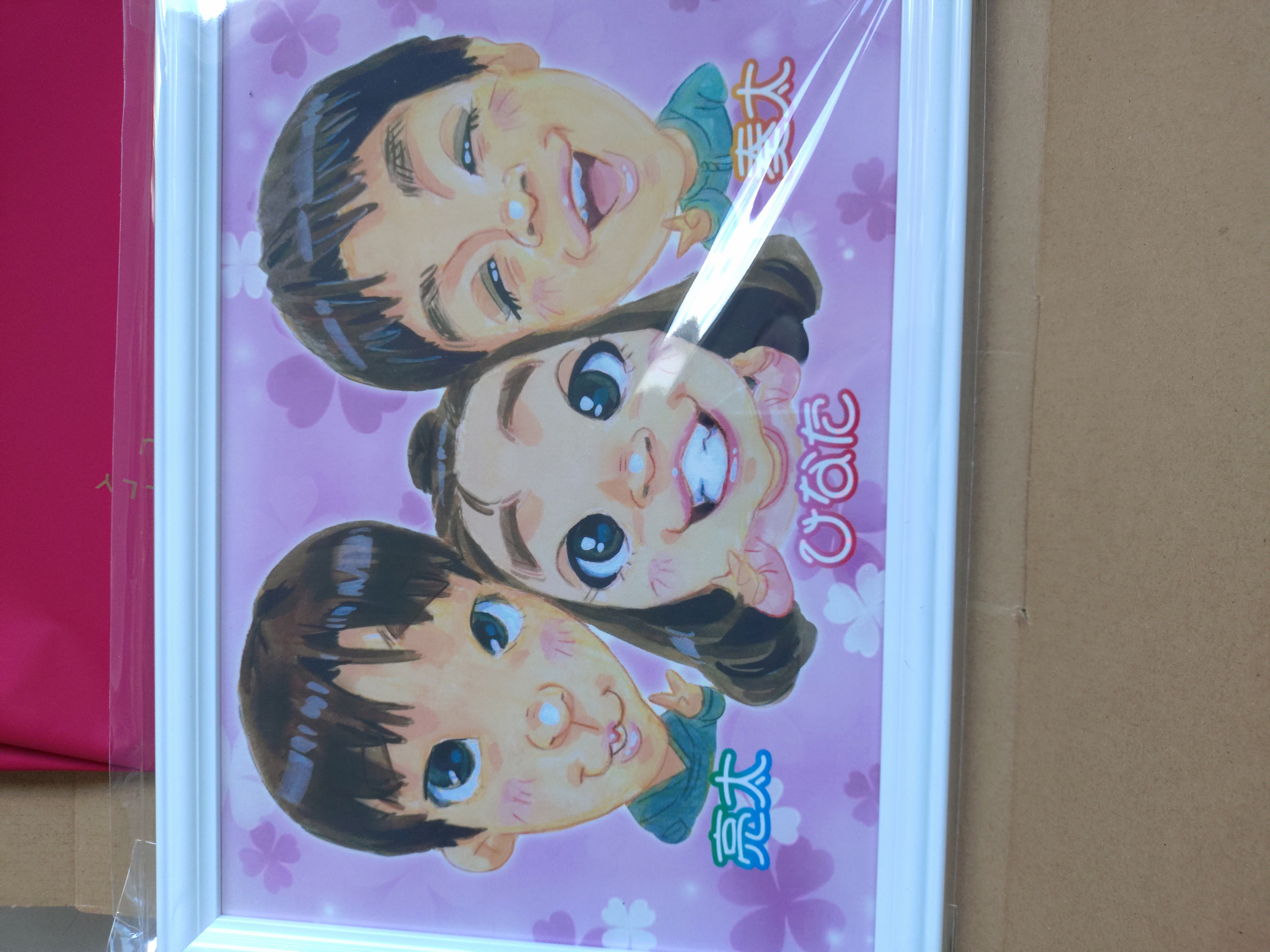 写真がうまく撮れていなくて色々ご迷惑おかけしながらも、すごく良い対応で助かりました。 発送も早くてビックリしました。 似顔絵が届くまでドキドキでしたが、すごく可愛い似顔絵が届きました。 妹と三つ子ちゃんにプレゼントしたらすごく喜んでくれました! また、機会があればよろしくお願いします。 ありがとうございました!