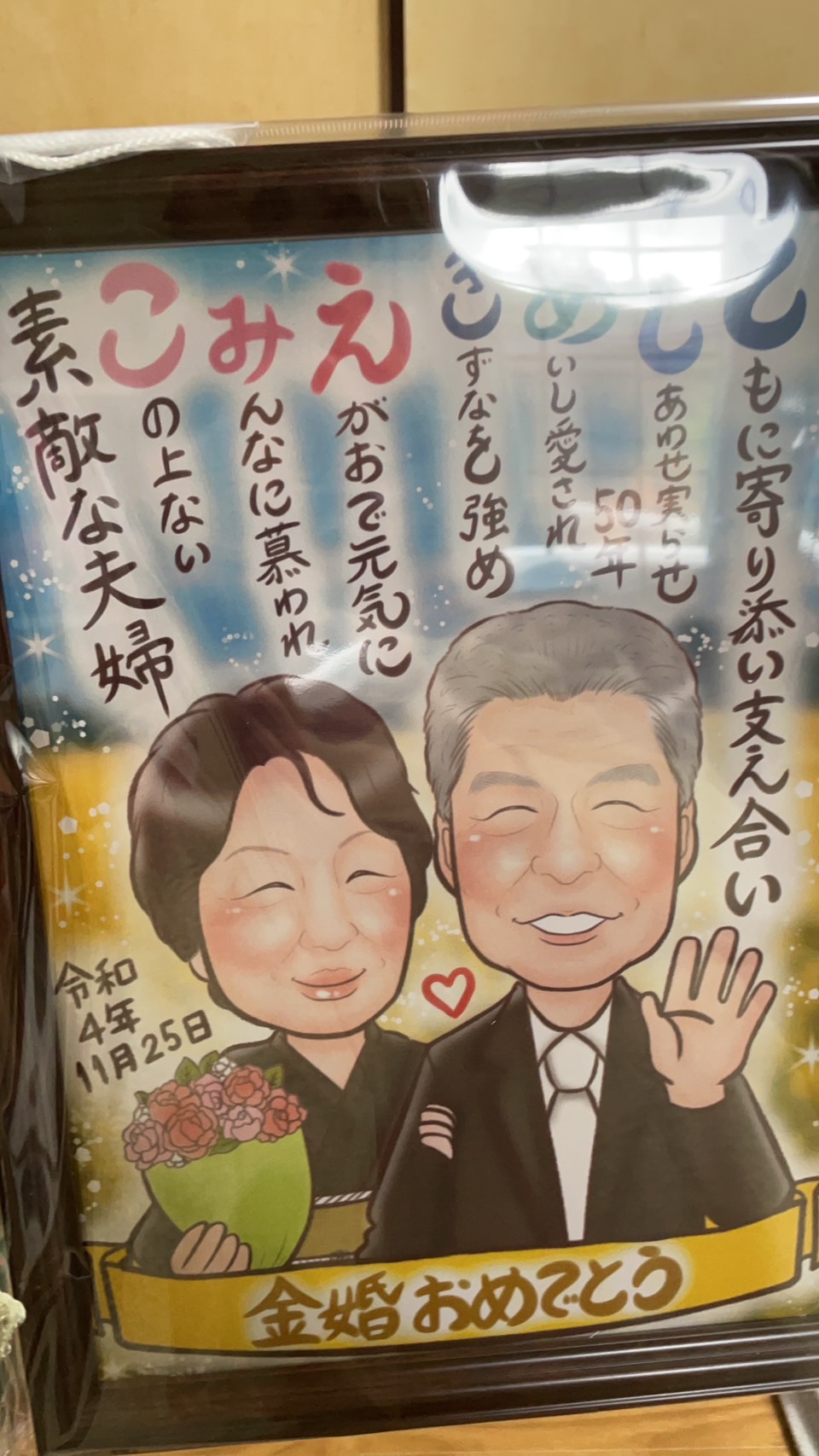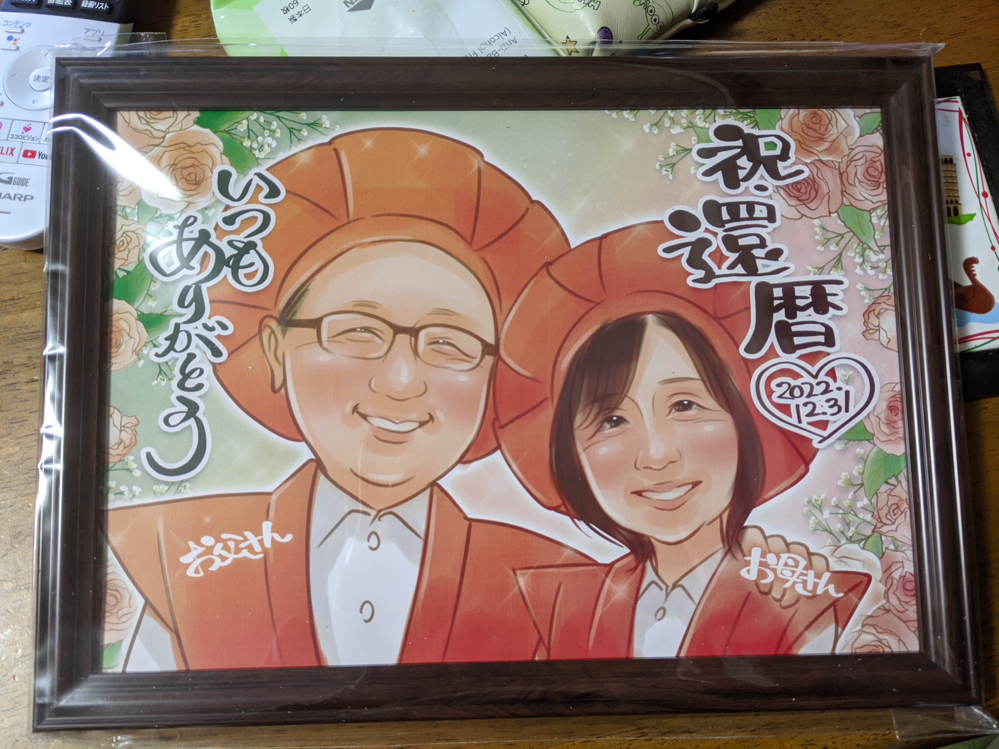 両親の還暦祝い記念に似顔絵をお願いしました。 納期については間に合うように調整、配慮して頂き 思っていた以上に速い仕上がりでした。 似顔絵も本人の雰囲気もありながら可愛らしい柔らかい印象に 描いて頂き、還暦らしいめでたい感じが出ていました。 両親にプレゼントするのが楽しみです。 ありがとうございました!