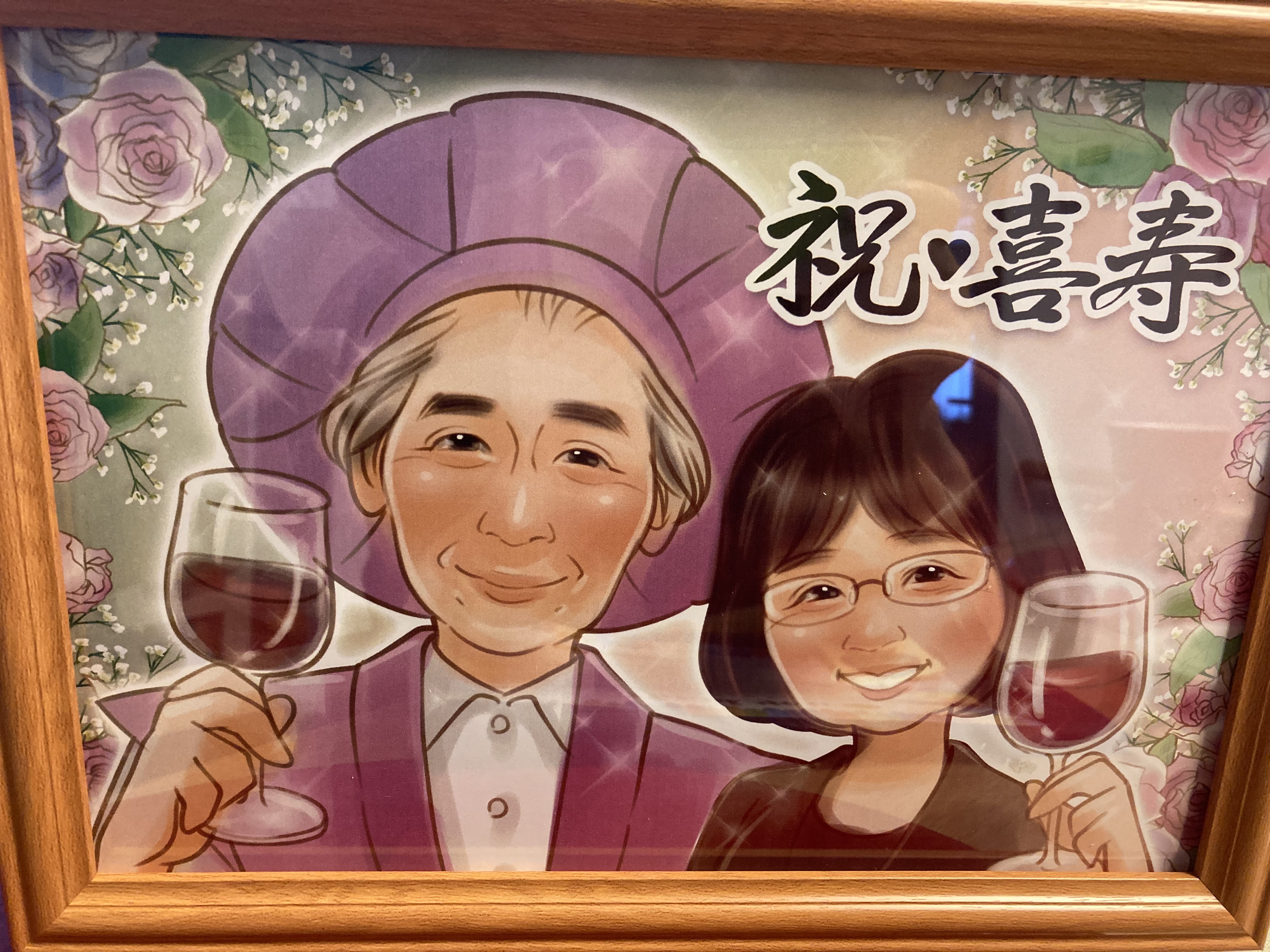 来月3日母の102歳の誕生日プレゼントに今回の似顔絵をお願いしました。 歳相応のものを想像していましたが、送られてきたのはとても可愛くとても良い出来で満足しています。来月家族と親戚の皆からのプレゼントと一緒に入居中の施設に持参しょうと思っております。いい記念になります、母も喜ぶと思います。 ありがとうございました。