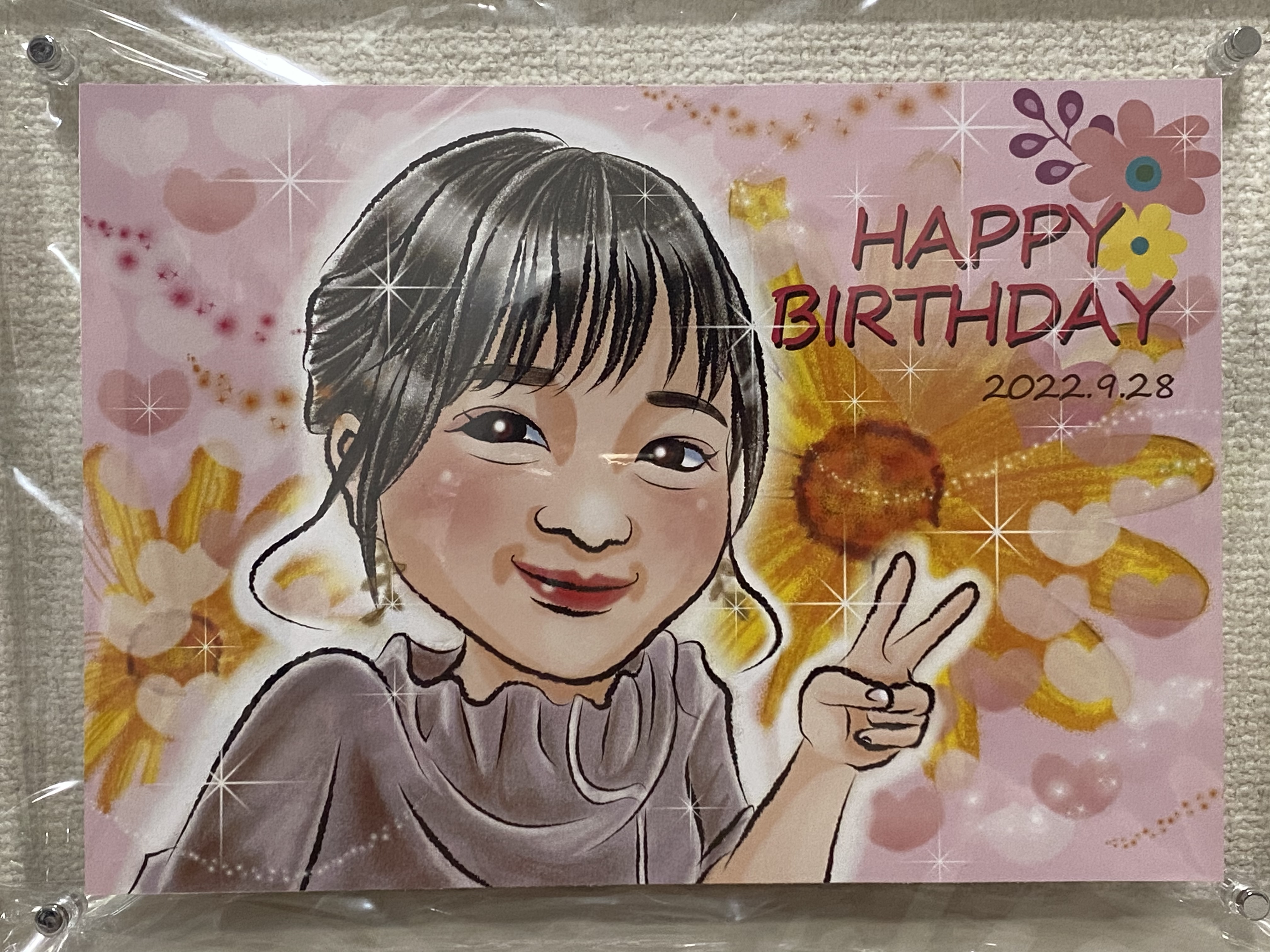 20歳の誕生日プレゼントとして記念に残るものだと良いなと思い似顔絵をプレゼントすることにしたのですが数枚の写真と自分のイメージだけで描いていて届くまではどうなるのか正直不安でした。でも、実物が届いて見てみると想像の何倍も素敵な絵で今回お願いして良かったなと思います。また、何かの記念日にはお願いしようと思います!最高です!!
