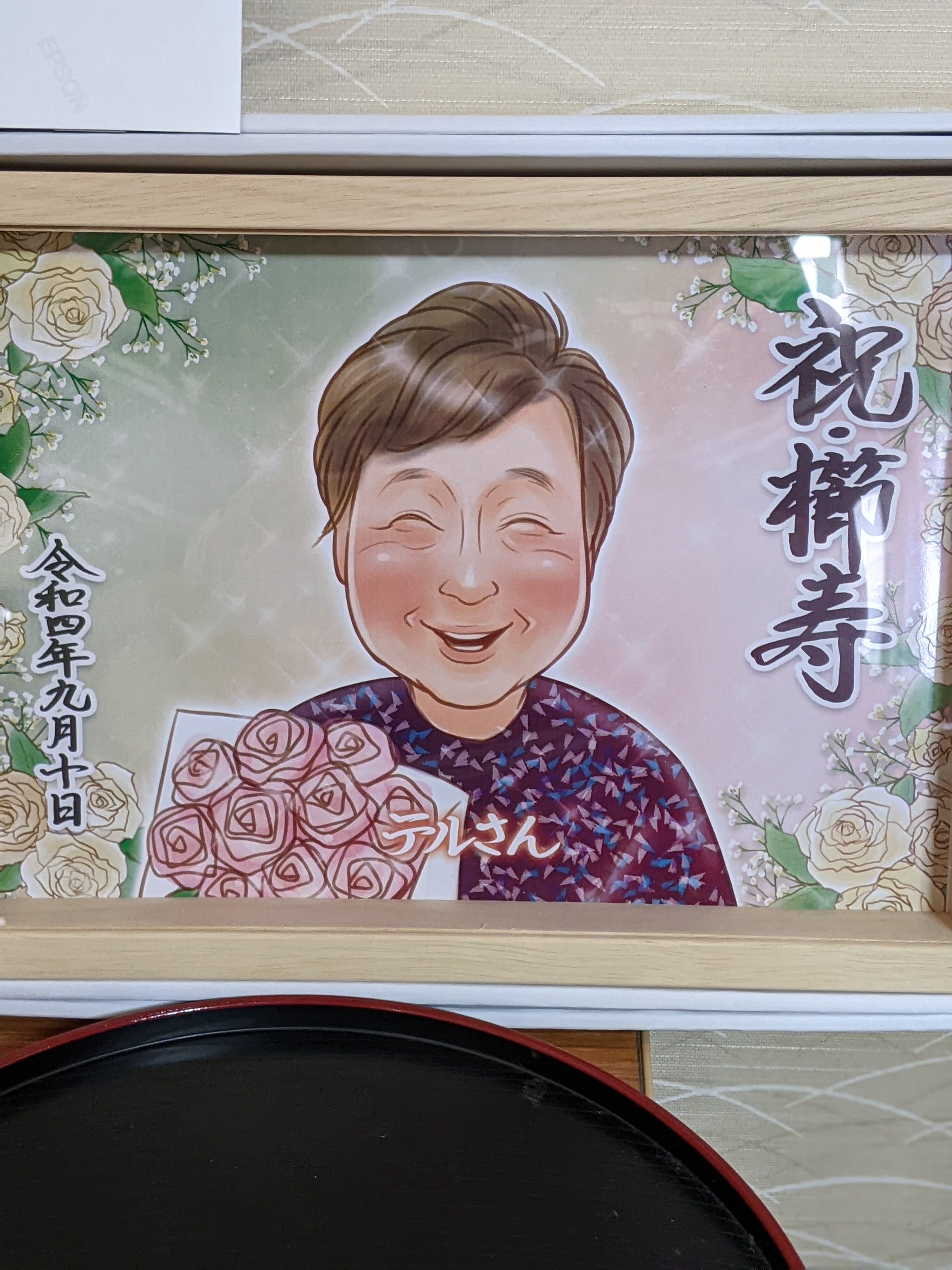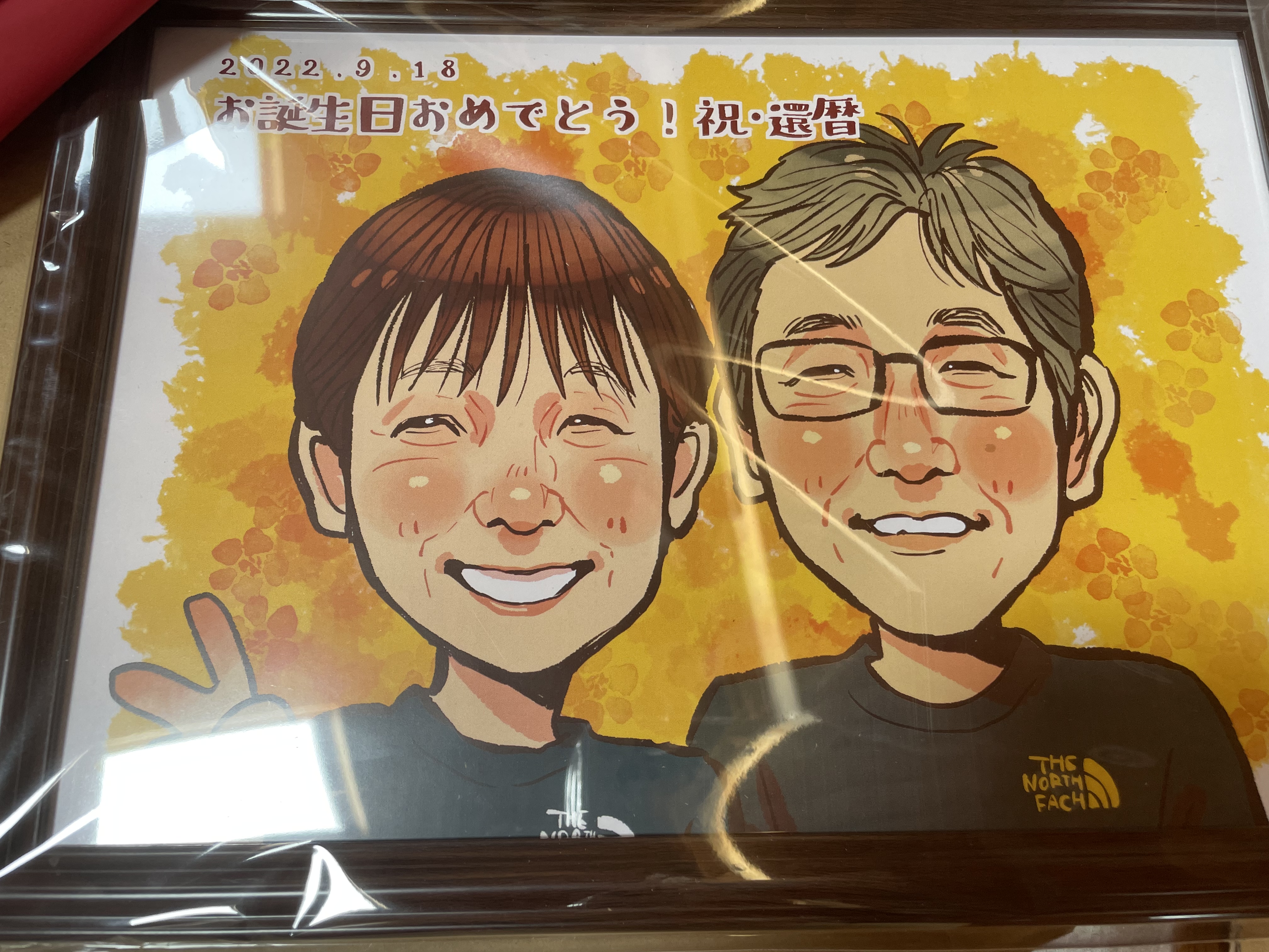 櫛寿のお祝いで似顔絵をお願いしました。 いろんなタイプの似顔絵があり、迷いましたが、 マルさんお願いして良かったと思います。 テルさんの人柄が良く表現出来ていると思います。 特に目や口元がとても感じが出ていると思います。 少し美人すぎたかもしれませんが、、 本人も大変喜んでくれました。 ありがとうございました。