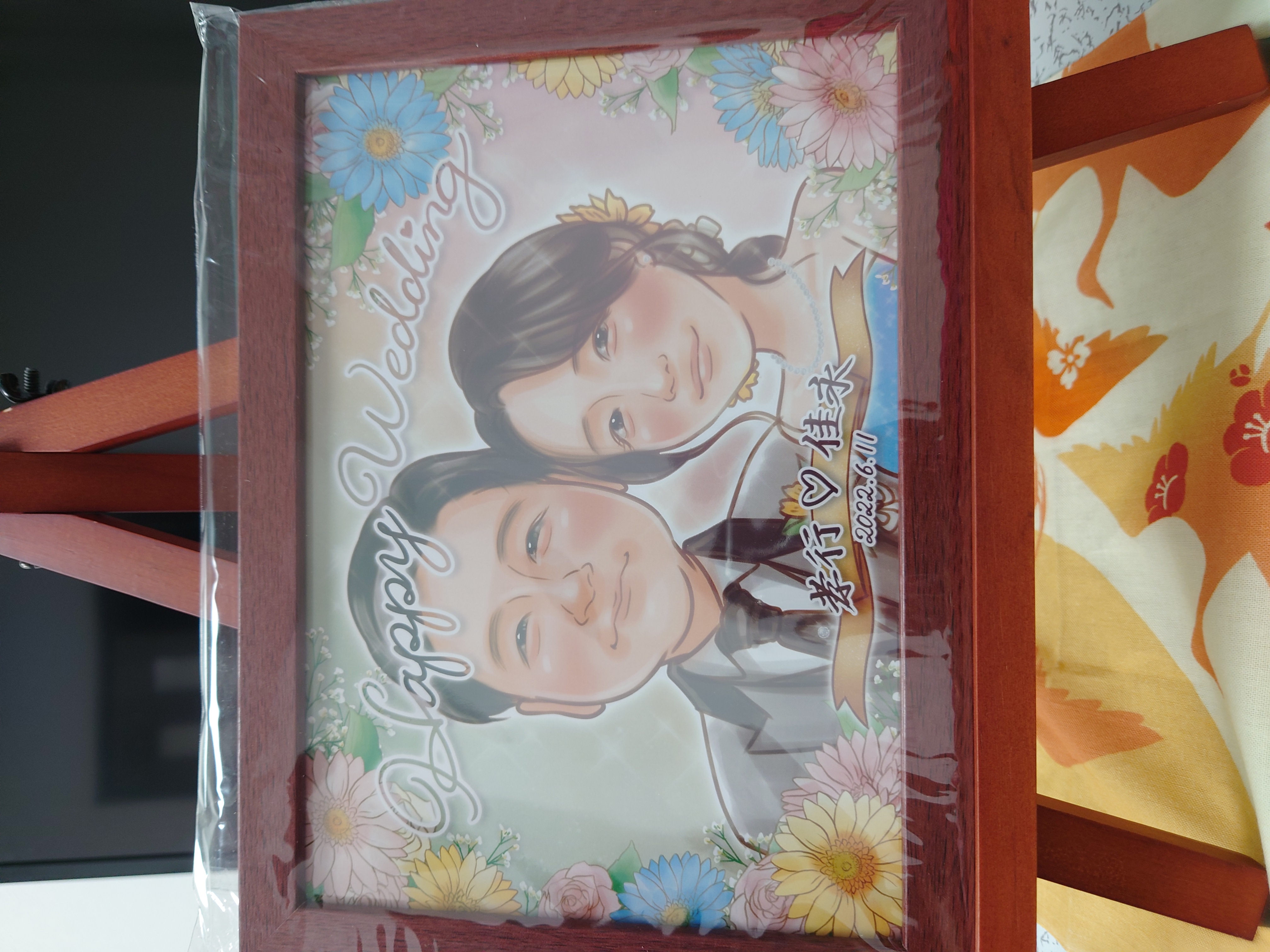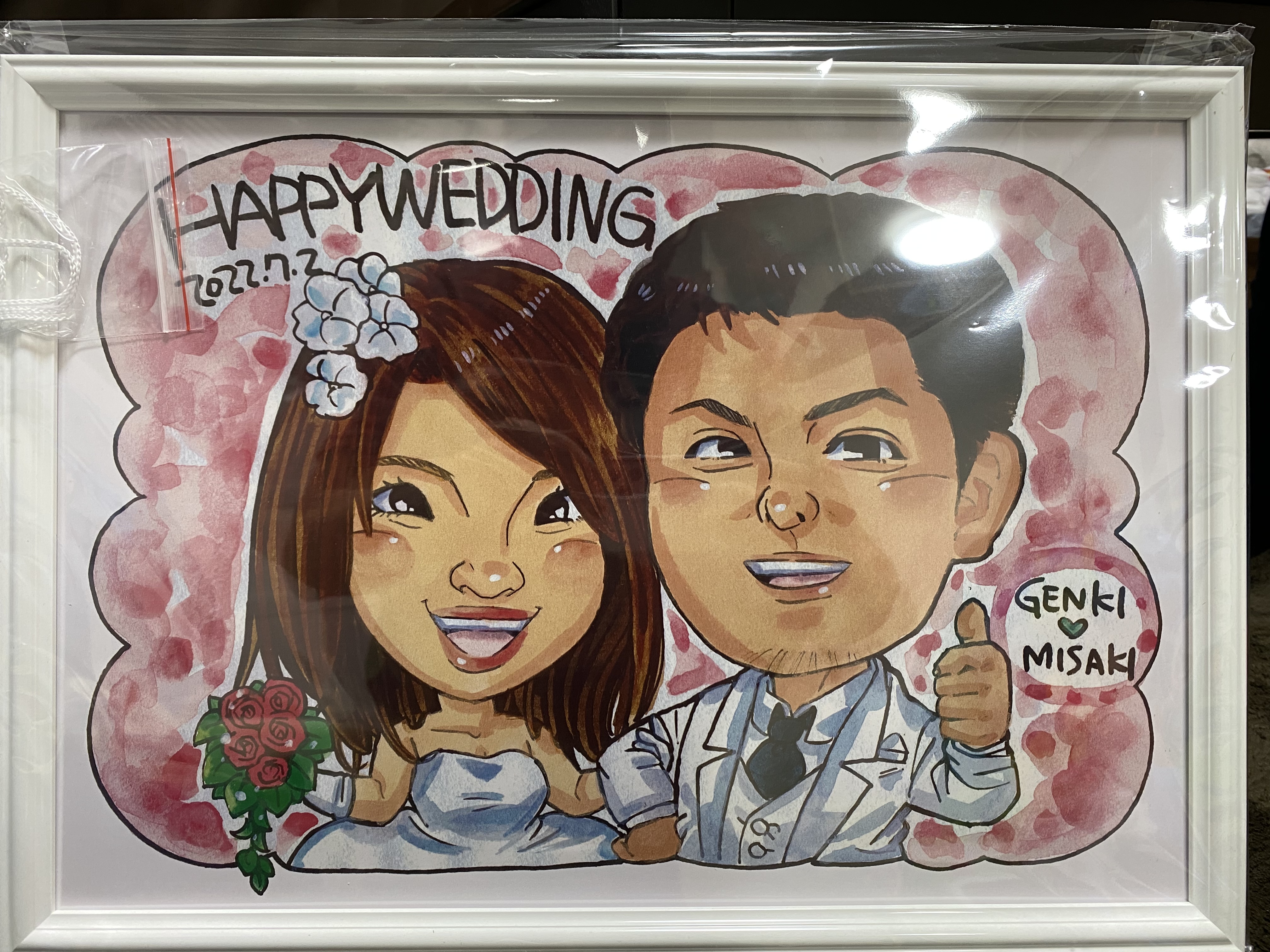 とても素晴らしい絵をありがとうございました!そして、 あまり写真の枚数を提供できなくて申し訳ありませんでした。 届くまでドキドキでしたが、いざ届いて見た時、 とても似ていてびっくりしました!大満足です! 結婚式のサプライズでお渡しするのですが、 プレゼントするのがとても楽しみです♪ 今回は大変ありがとうございました!!
