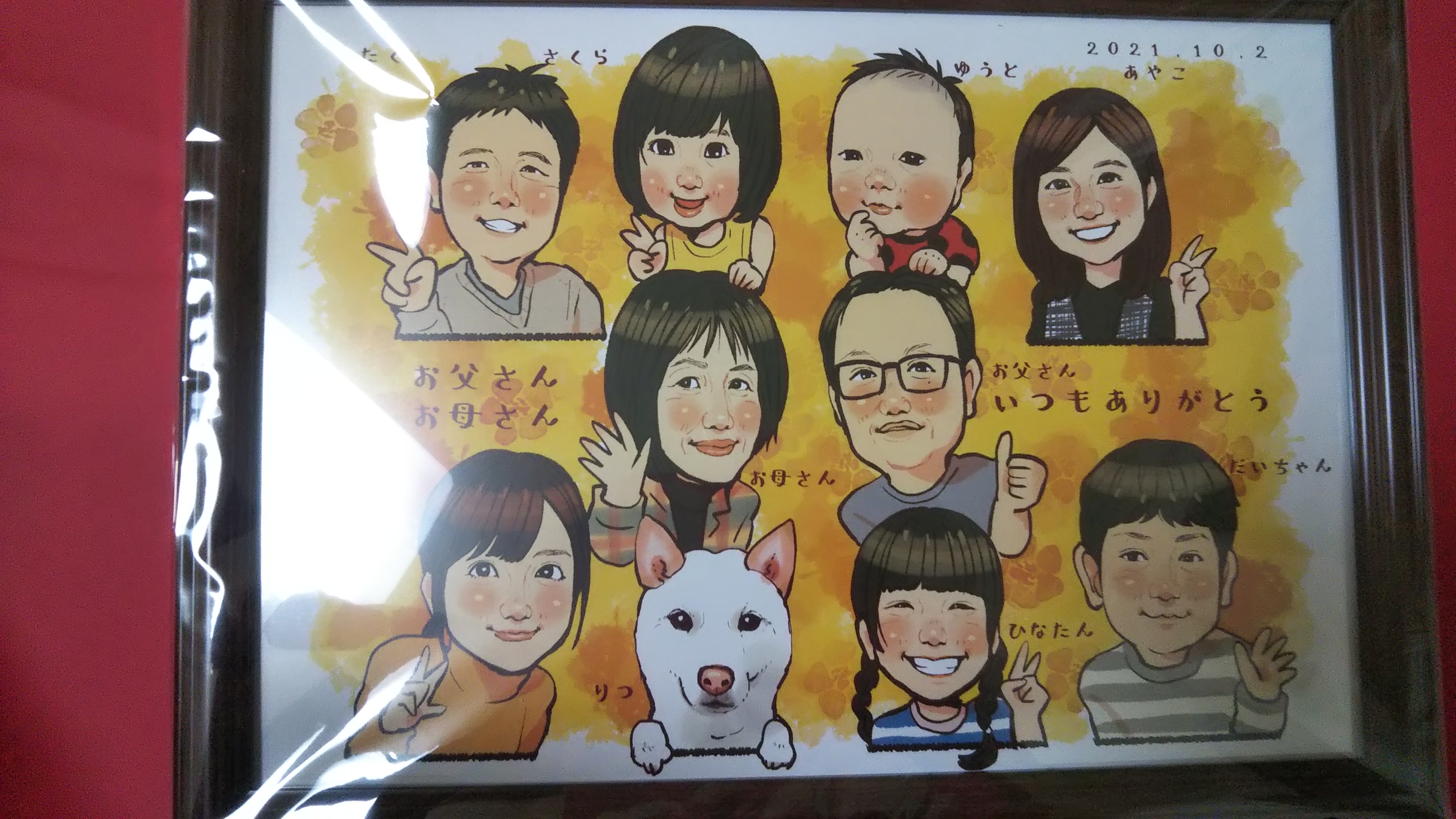 お世話になりました。 似顔絵、受け取り、確認いたしました。 明るい元気な絵となっており、妻に渡す時の反応が、楽しみです。 実は、これから渡すのですが、 家族皆に似顔絵のことは秘密にしているので、 渡す時の家族皆のリアクションが楽しみです! また、機会がありましたら、よろしくお願いいたします。