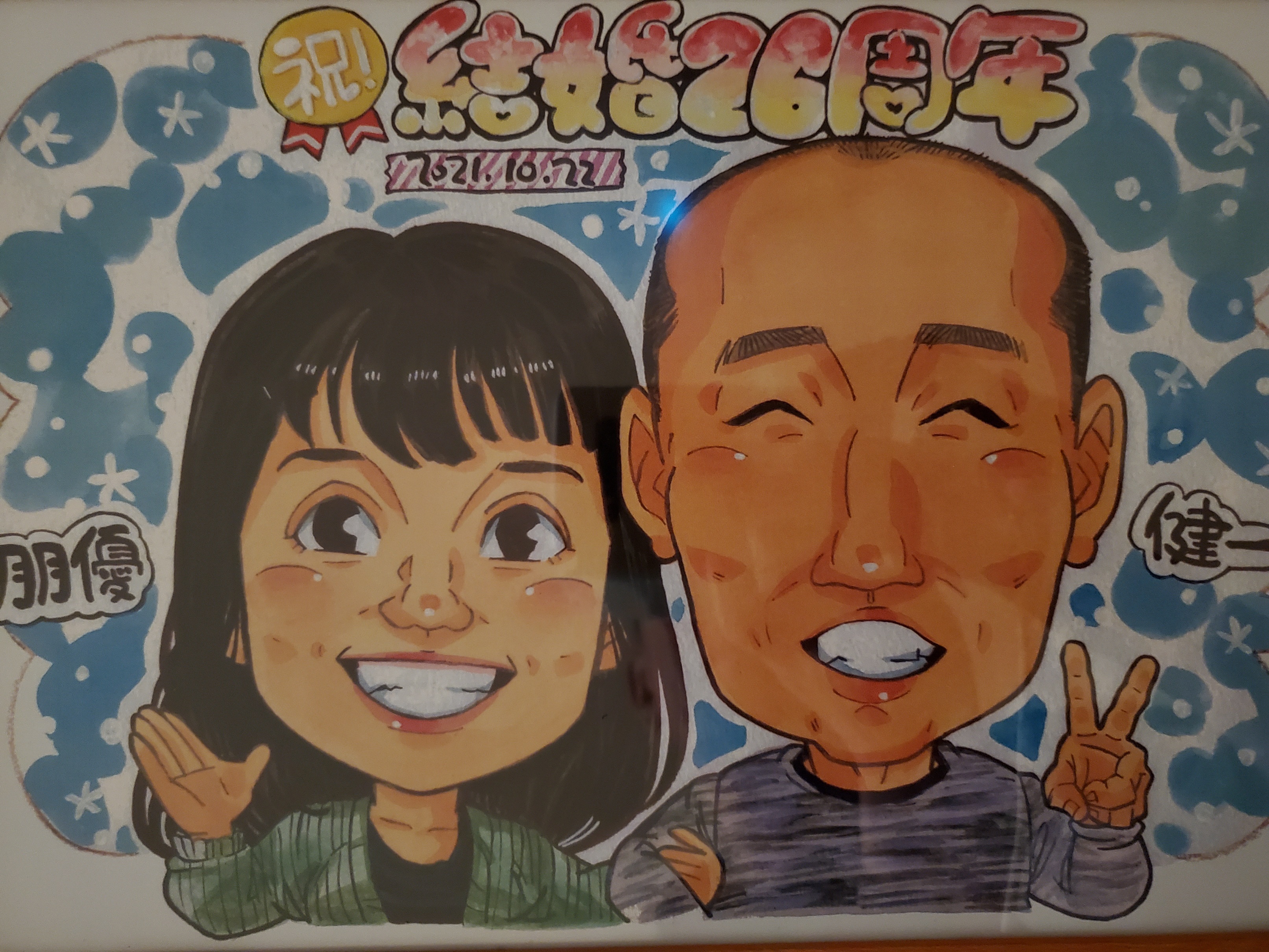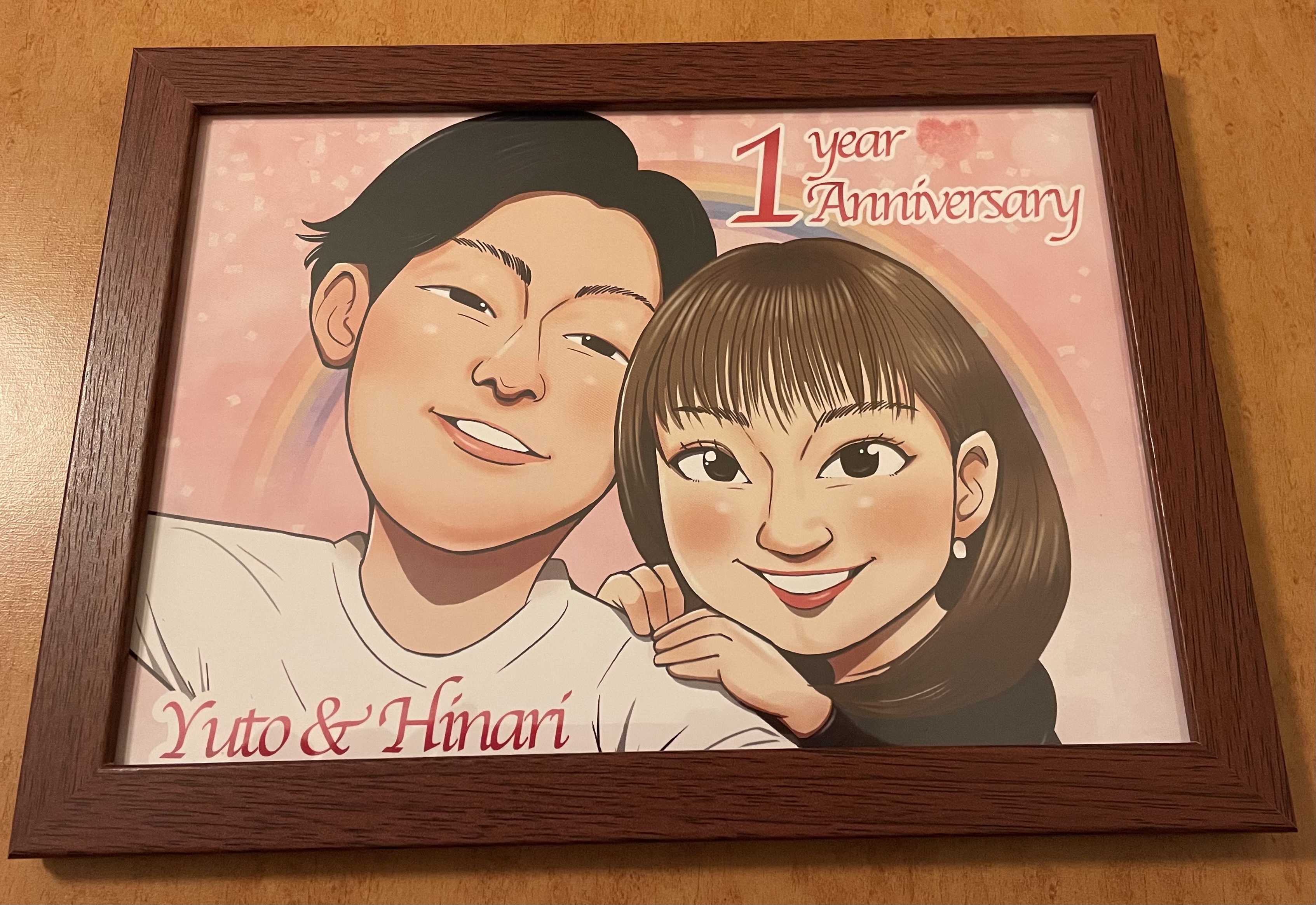 最初にお願いしていた方が忙しく、絵の着手に時間が掛かるとご連絡を頂き、他の方を提案してくださり、臨機応変に対応してくださるところが信頼できる会社だなと感じました。 出来上がりの似顔絵もそれぞれの特徴をよく掴まれており、想像以上の仕上がりで妻も大変喜んでいました。 今度は自分たちだけではなく、親や子供達の記念日にも使わせて頂きます。 今回はありがとうございました。