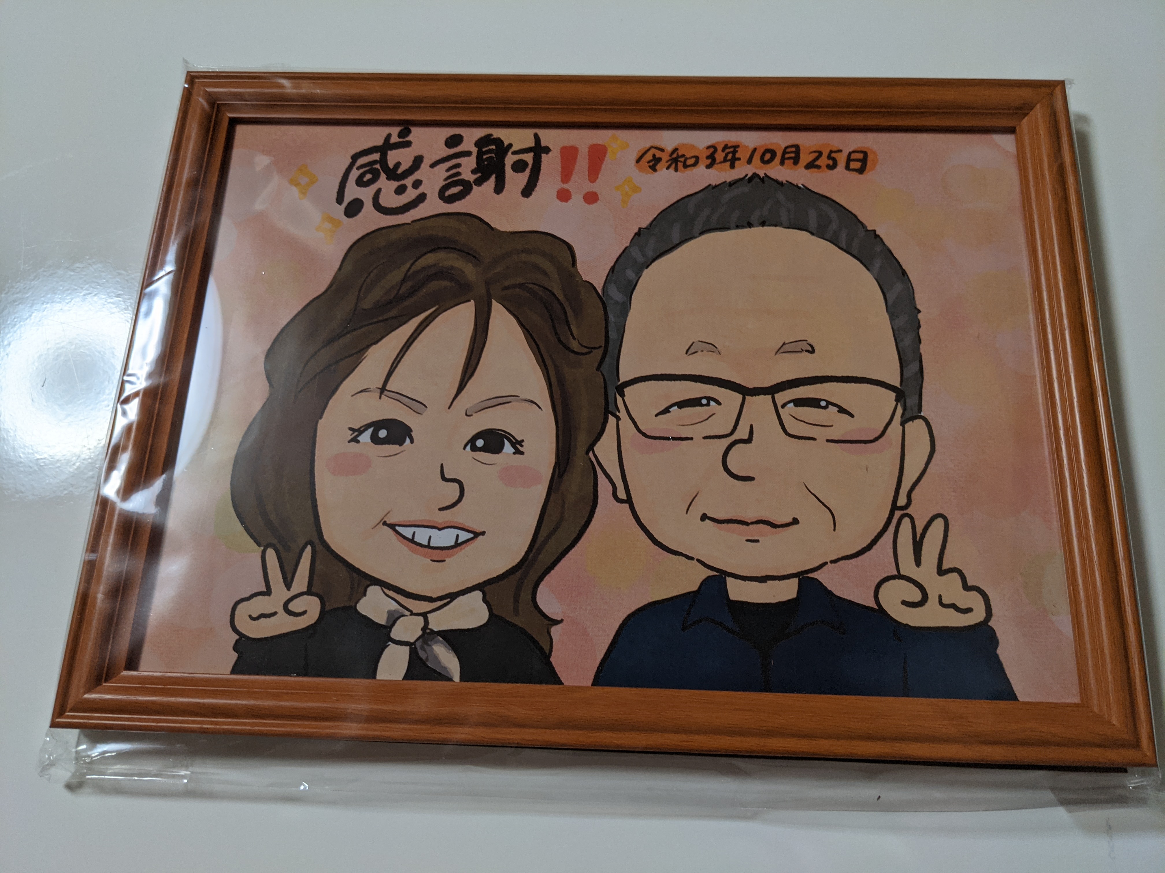 予想していたよりとても良い似顔絵で親への感謝を伝えられると思いました。 私たちの結婚式後のサプライズで渡しました。 旦那の両親はとても喜んでました。 途中で絵師の変更等もありましたが頼んで良かったです 本当にありがとうございましたm(_ _)m また、頼むこともあるかもしれまんのでその時は、お願いしますm(*_ _)m