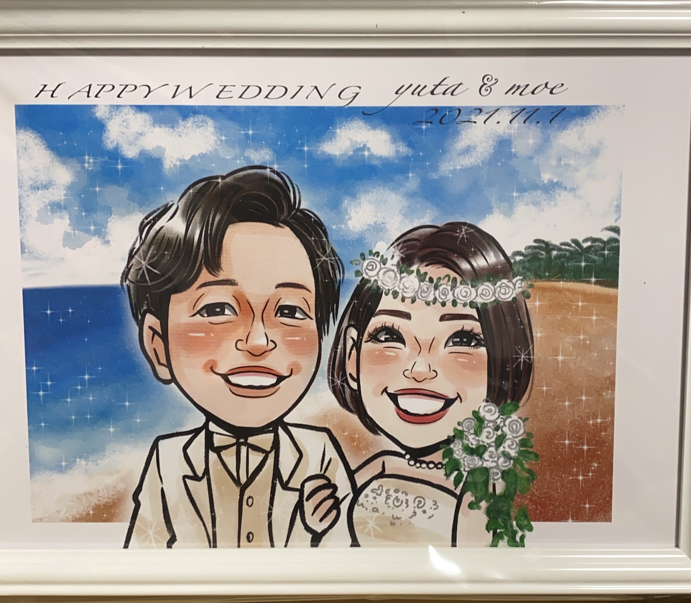写真の当人達の特徴をとらえた理想的な似顔絵を描いてくださり、ありがとうございます。大変、満足しております。以前、別サイトで絵画を発注したことがあり、出来栄えが不十分なことがあった為、ネットでの似顔絵依頼は少し心配でした。ただ、届いた似顔絵は、とても優しく描かれた違和感のない素敵な作品でしたので大変、感謝しております。