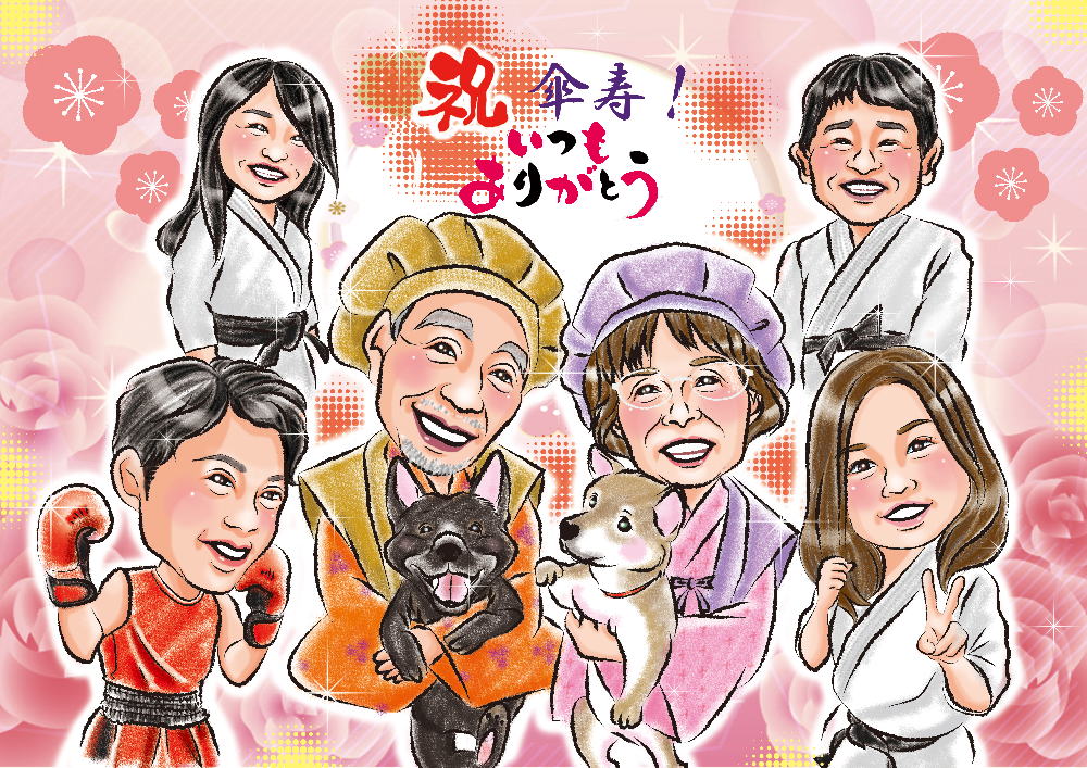 要望通り明るい華やかな似顔絵で、大変満足しています。 事前に送付する写真で、顔がはっきり大きく写ったものがなく苦労しました。 また写真だと見る角度が一方向になるので、違う角度のものもあればよかったかな~と 次回お願いするときの参考にもなりました。 でも特徴を上手く表現されていてよかったです。 ありがとうございました。