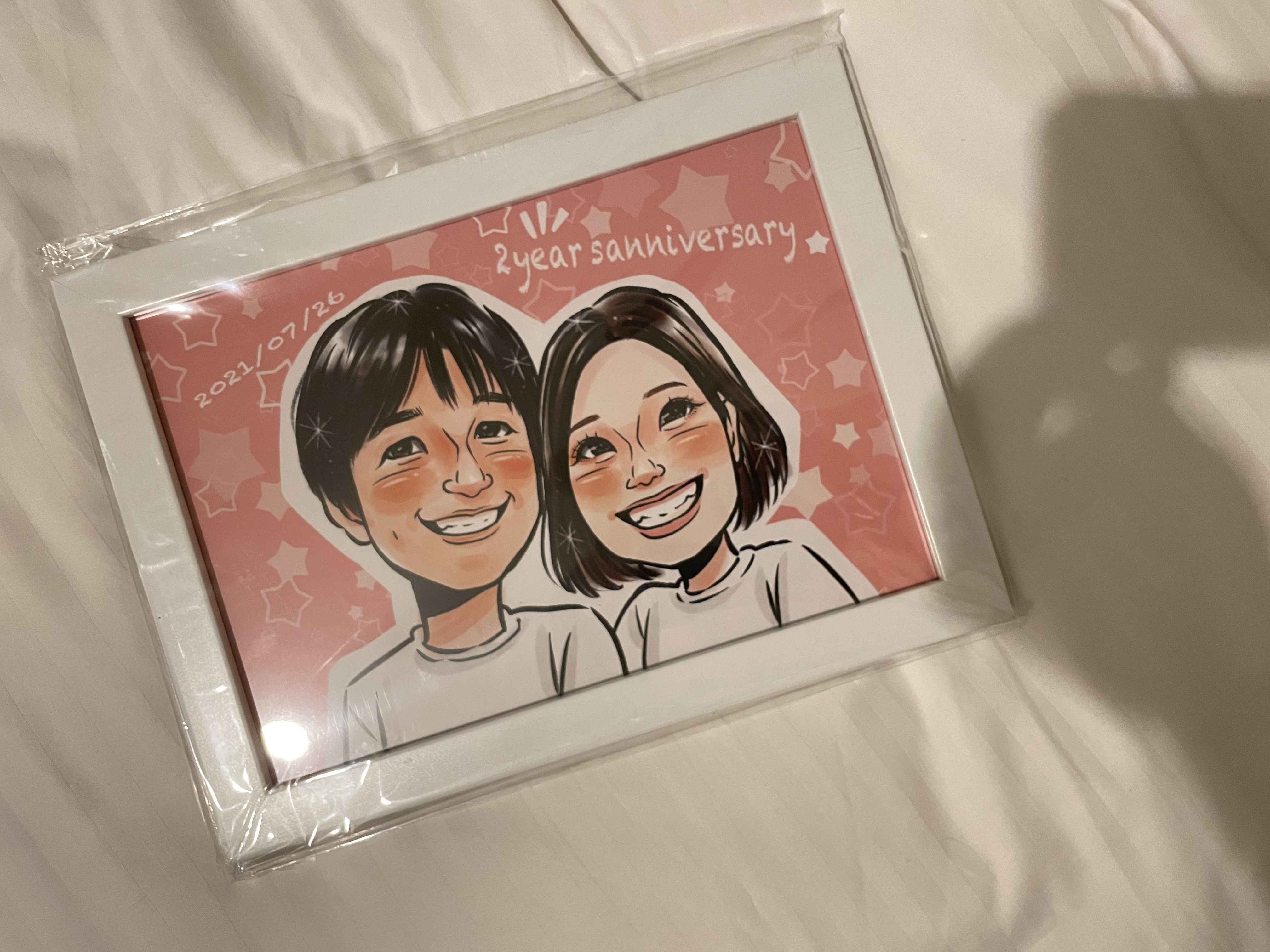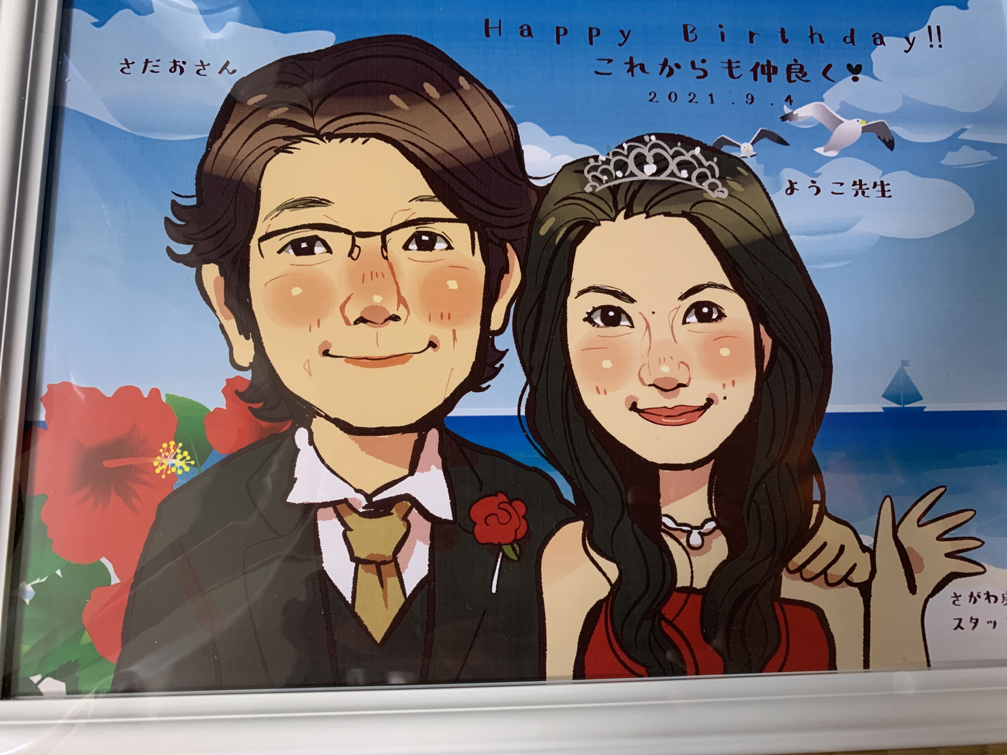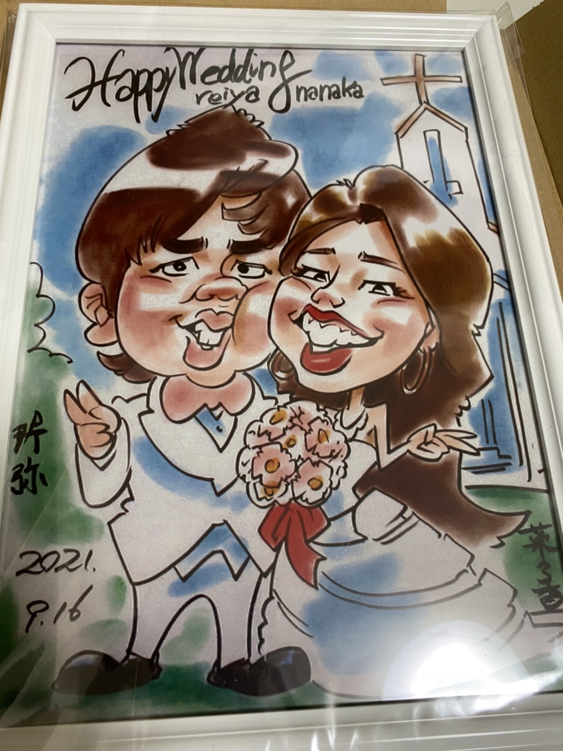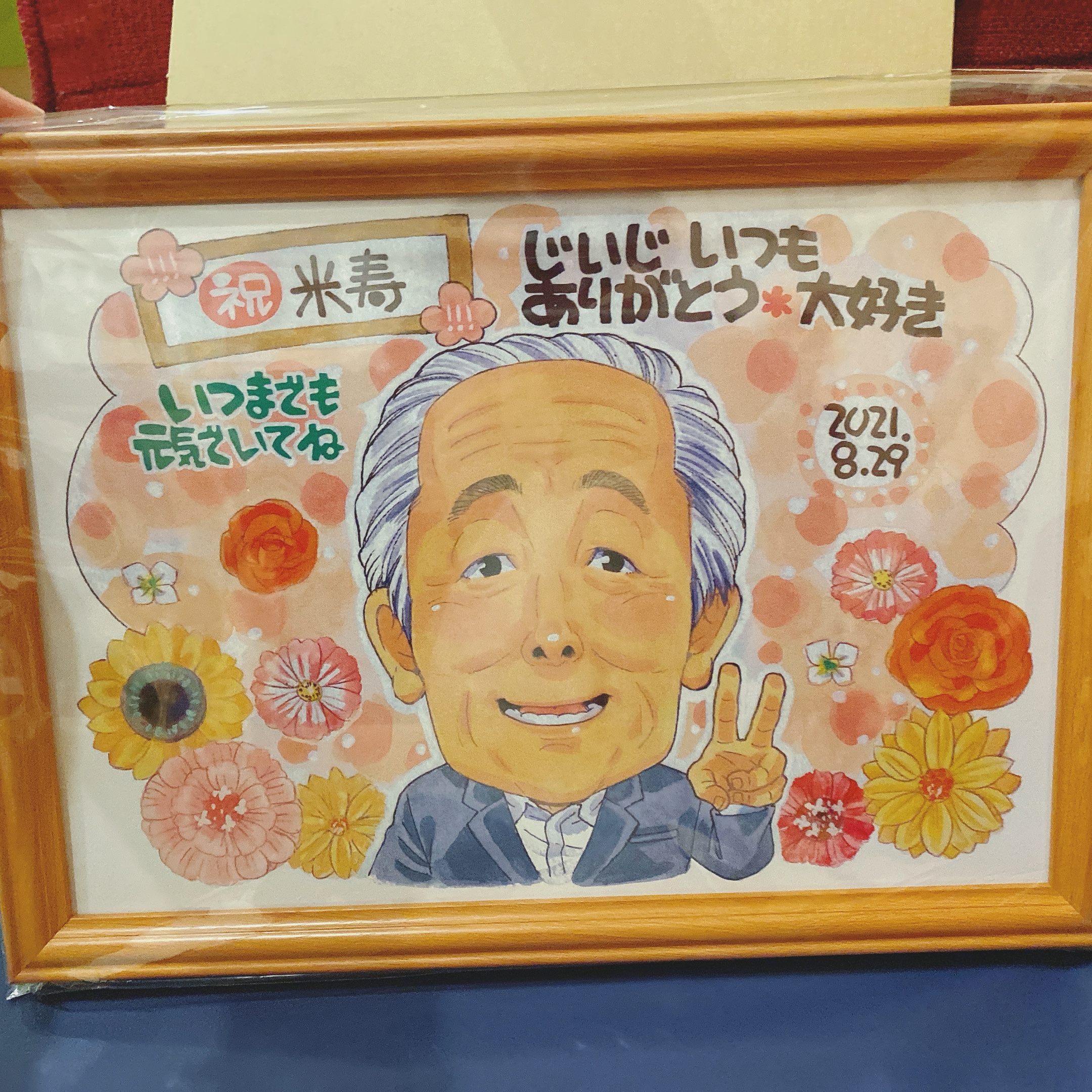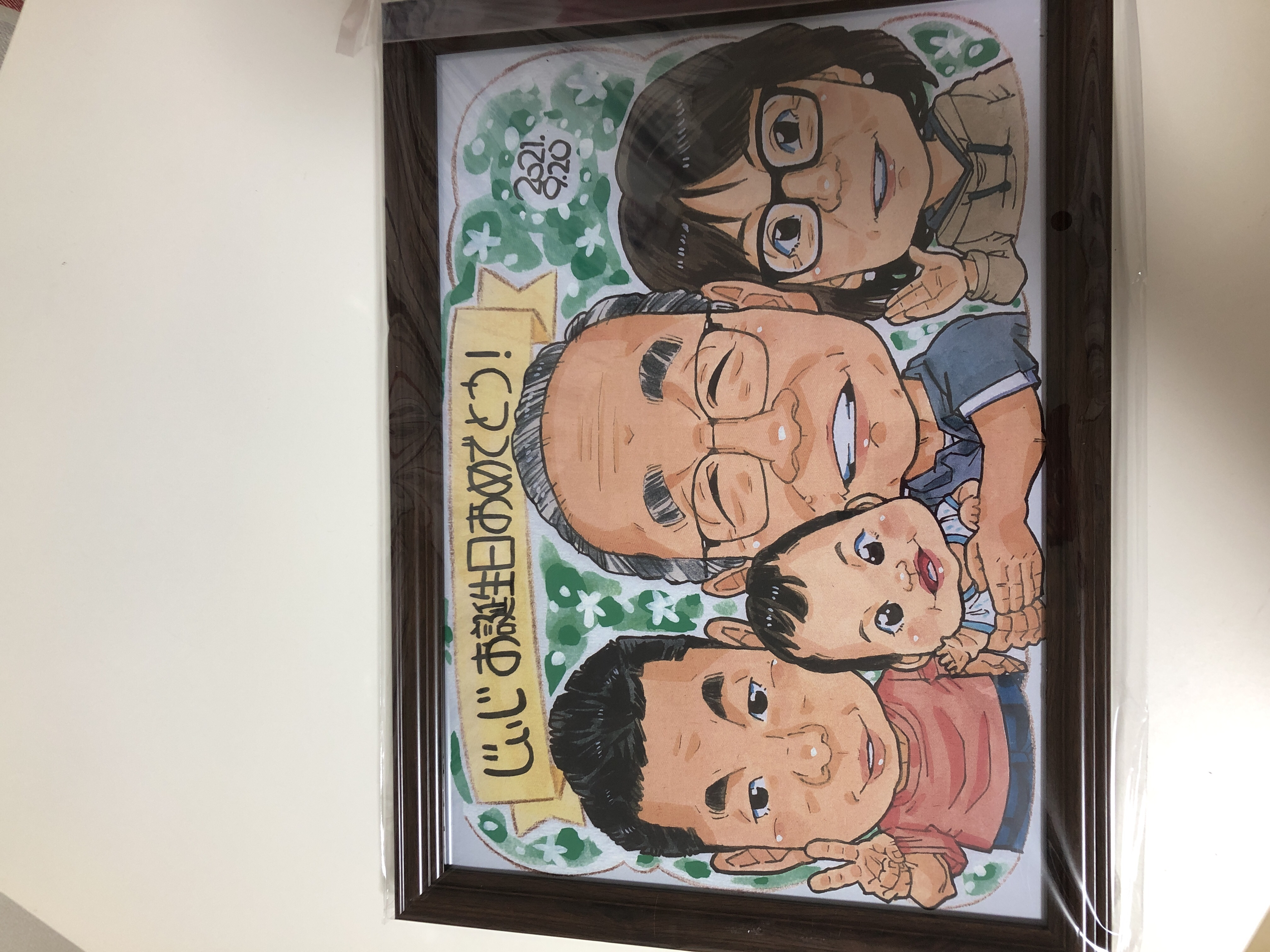 このお祝いとしてお花とも考えましたが、記念日に残るものと思い貴社に似顔絵依頼しました!