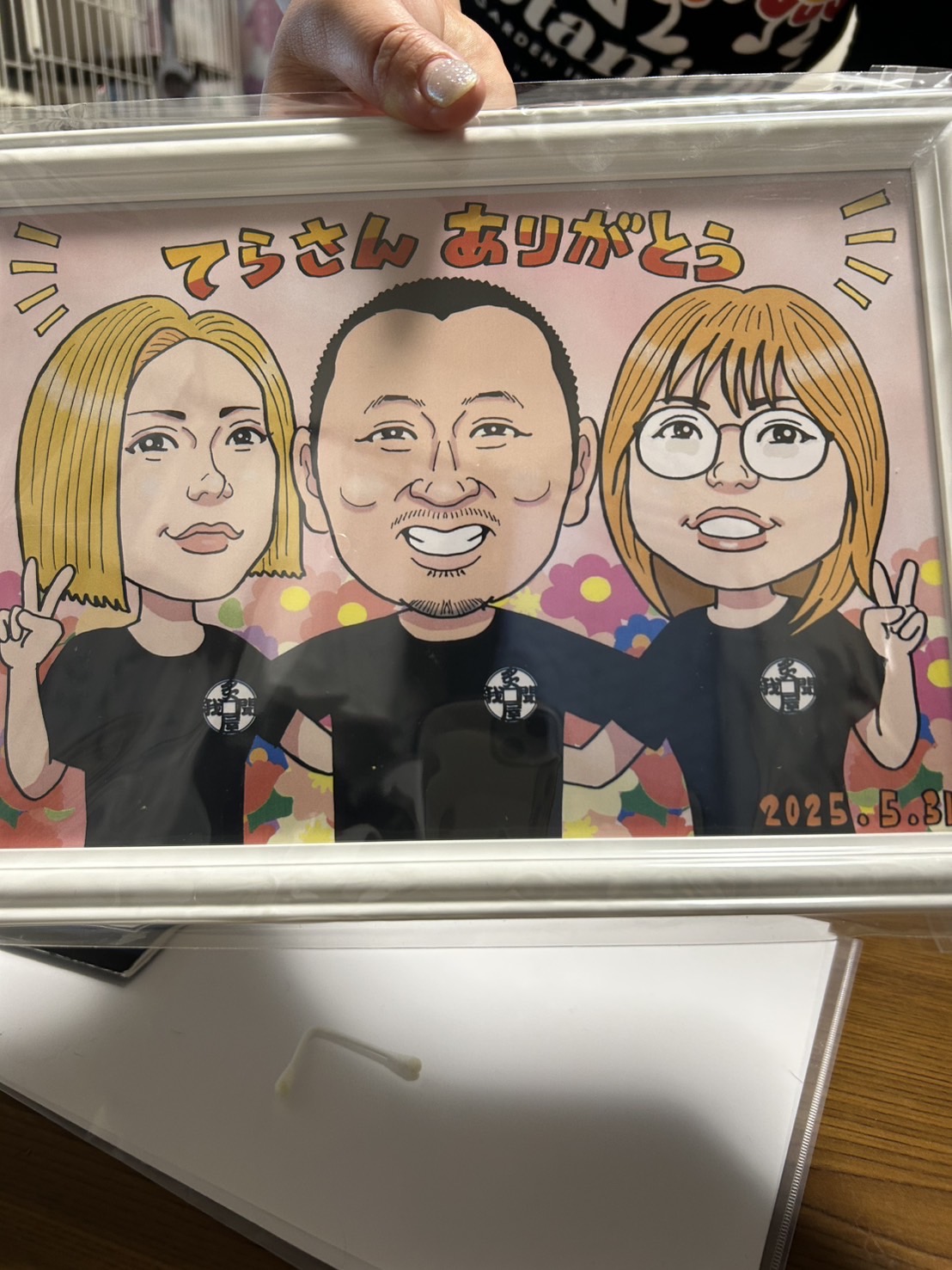 いつも誕生日や入学、いろんな記念日にお世話になってます。今回は毎年恒例の誕生日にお願いしました。貰う方も似顔絵に期待しつつ楽しみにしてるみたいです。毎回ながら期待以上の出来栄えに嬉しく思います。贈った側も貰う側も笑顔になる作品に感謝です。年に数回しか頼めないですが、これからも記念日にはお願いしたいです。