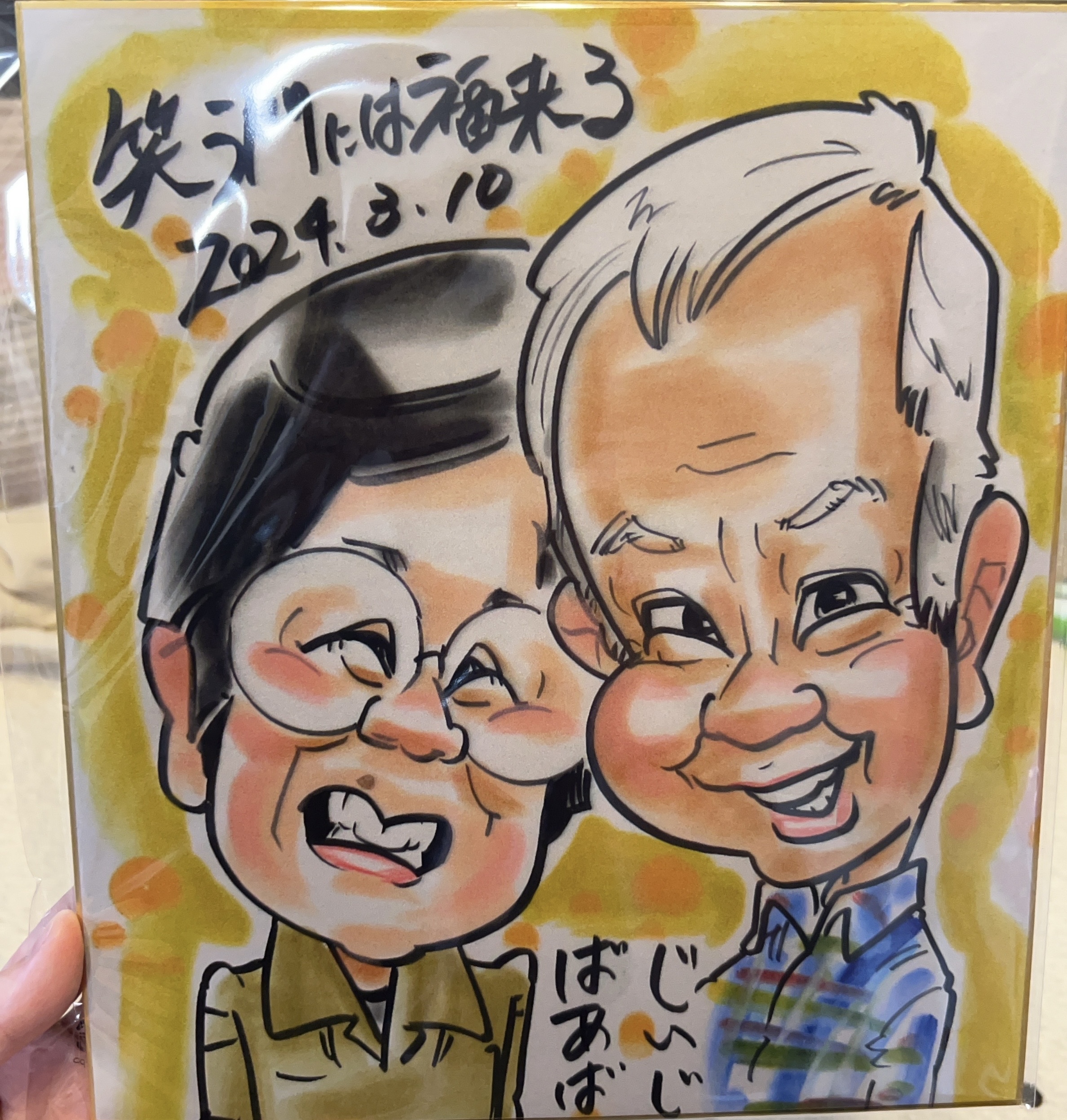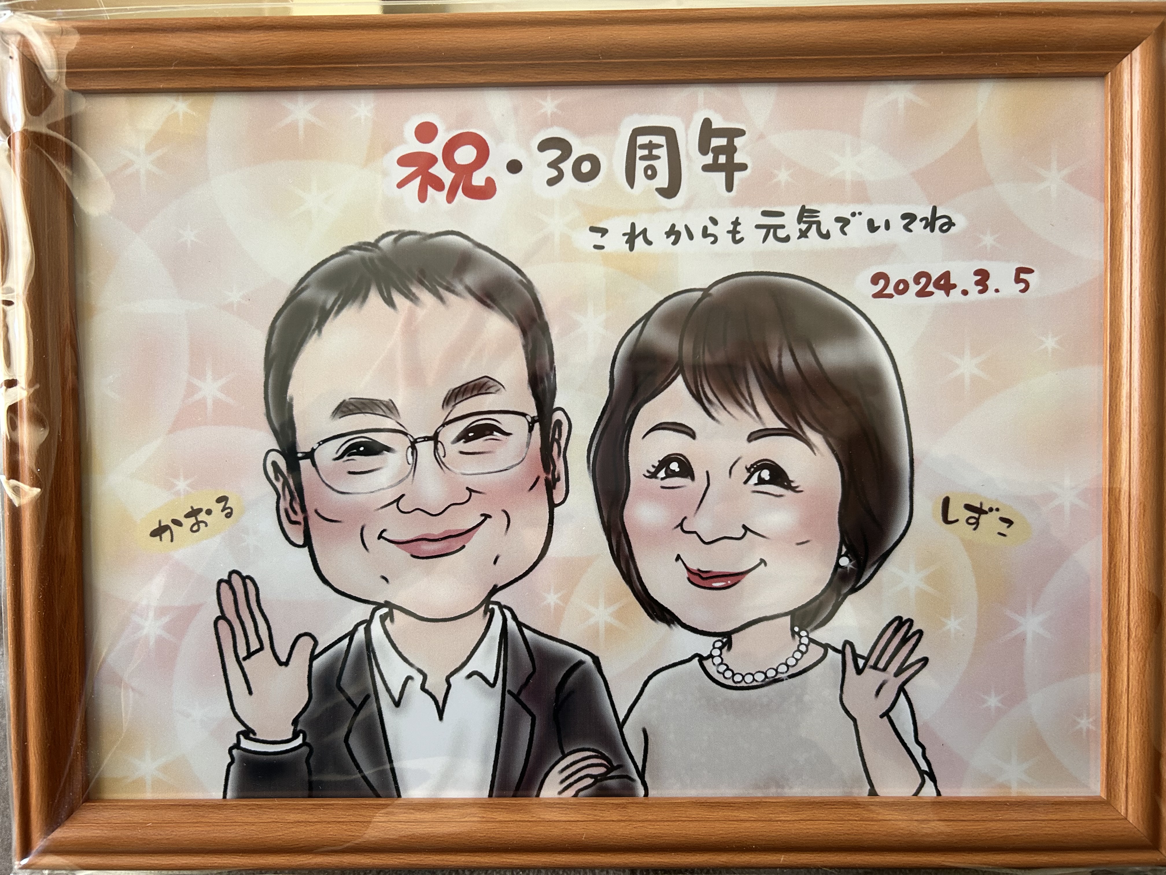 父の似顔絵と母の似顔絵を並べて飾ってくれていますが、バランスも考えて制作していただけたのでとてもいい感じです!